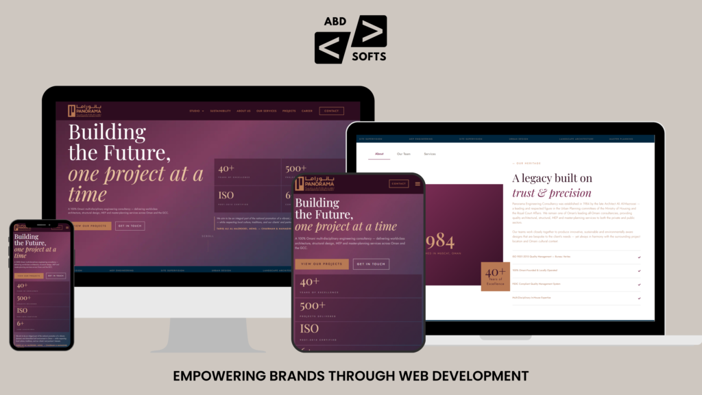 A full website redesign for one of Oman’s oldest and most respected engineering firms — transforming a 40-year-old brand into a dark, refined digital presence built for Elementor and WordPress.